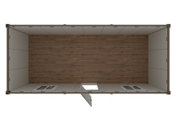 SYSTEEM Containerframes en hoekpilaren worden geproduceerd als een geschroefd systeem van speciaal gevormde, gelaste, roestbestendige gegalvaniseerde staalplaat. De vloerconstructie bestaat uit U- en C-profielen en wordt gemonteerd met een boutensysteem. De ondergrond dient waterpas te zijn.