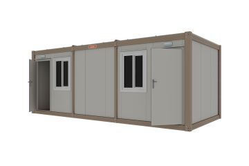SYSTEEM Containerframes en hoekpilaren worden geproduceerd als een geschroefd systeem van speciaal gevormde, gelaste, roestbestendige gegalvaniseerde staalplaat. De vloerconstructie bestaat uit U- en C-profielen en wordt gemonteerd met een boutensysteem. De ondergrond dient waterpas te zijn.