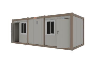SYSTEEM Containerframes en hoekpilaren worden geproduceerd als een geschroefd systeem van speciaal gevormde, gelaste, roestbestendige gegalvaniseerde staalplaat. De vloerconstructie bestaat uit U- en C-profielen en wordt gemonteerd met een boutensysteem. De ondergrond dient waterpas te zijn.