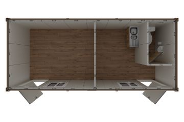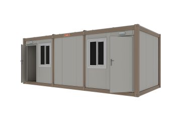 SYSTEEM Containerframes en hoekpilaren worden geproduceerd als een geschroefd systeem van speciaal gevormde, gelaste, roestbestendige gegalvaniseerde staalplaat. De vloerconstructie bestaat uit U- en C-profielen en wordt gemonteerd met een boutensysteem. De ondergrond dient waterpas te zijn.