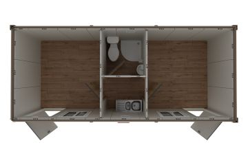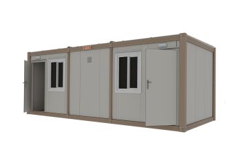 SYSTEEM Containerframes en hoekpilaren worden geproduceerd als een geschroefd systeem van speciaal gevormde, gelaste, roestbestendige gegalvaniseerde staalplaat. De vloerconstructie bestaat uit U- en C-profielen en wordt gemonteerd met een boutensysteem. De ondergrond dient waterpas te zijn.