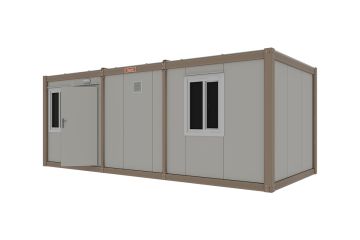 SYSTEEM Containerframes en hoekpilaren worden geproduceerd als een geschroefd systeem van speciaal gevormde, gelaste, roestbestendige gegalvaniseerde staalplaat. De vloerconstructie bestaat uit U- en C-profielen en wordt gemonteerd met een boutensysteem. De ondergrond dient waterpas te zijn.